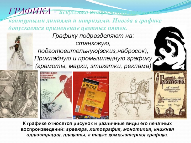 Слайд 11ГРАФИКА - искусство изображения предметов контурными линиями и штрихами. Иногда в
