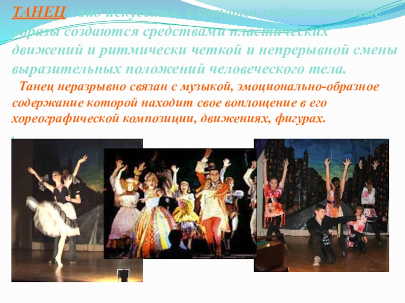 Слайд 23ТАНЕЦ - вид искусства, в котором художественные образы создаются средствами пластических