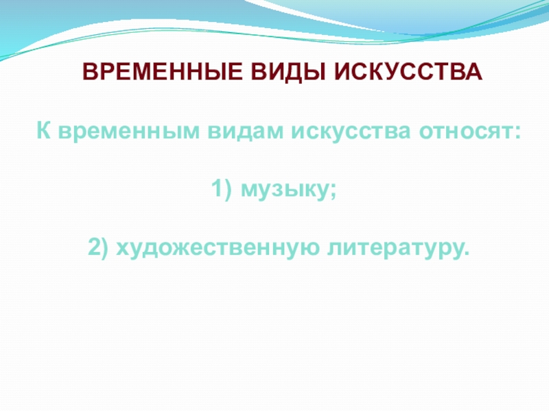 Слайд 18 ВРЕМЕННЫЕ ВИДЫ ИСКУССТВА