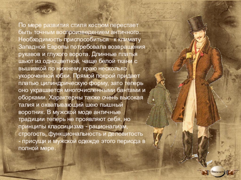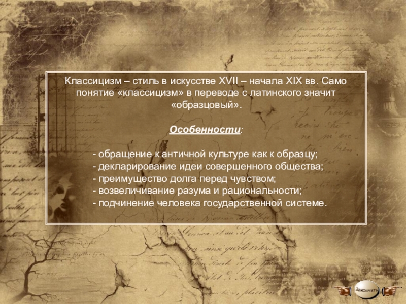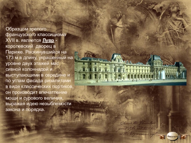 Широко используются античные ордер и орнаментика. Творческое заимствование форм, композиций и образцов искусства античного мира возвращает в архитектуру колонный портик, являющийся доминирующей композиционной частью здания. Завершают фасад с двух сторон выступы-ризалиты или маленькие портики. Такой прием не только подчеркивает величие и доминанту главного портика, но и помогает восприятию здания как пластического целого, утверждающего себя в окружающем пространстве.