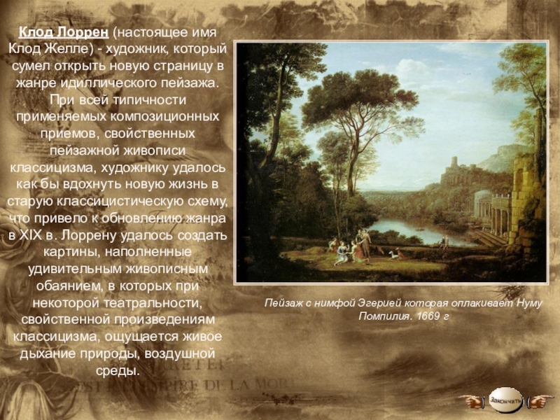 Пейзаж с нимфой Эгерией которая оплакивает Нуму Помпилия. 1669 г