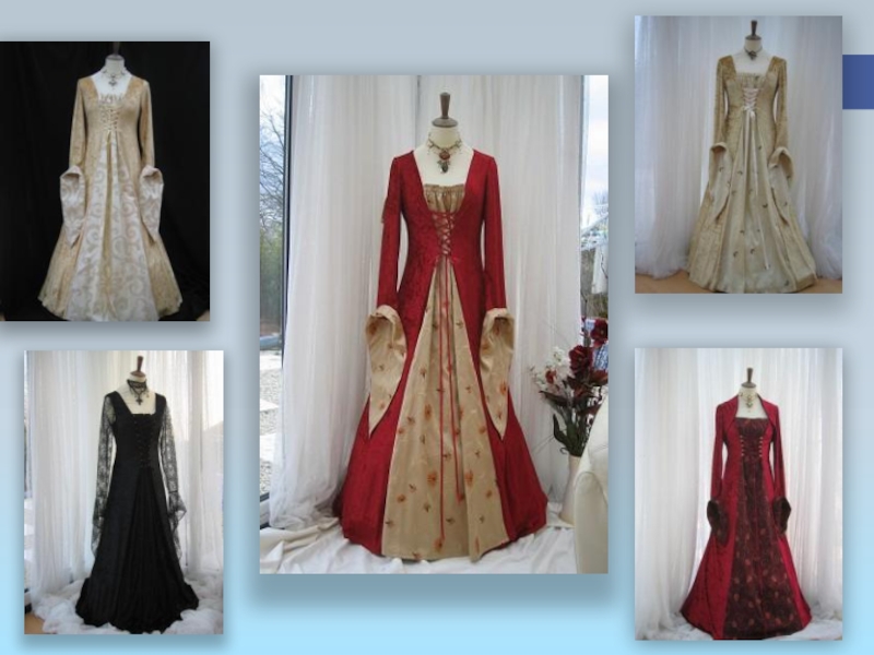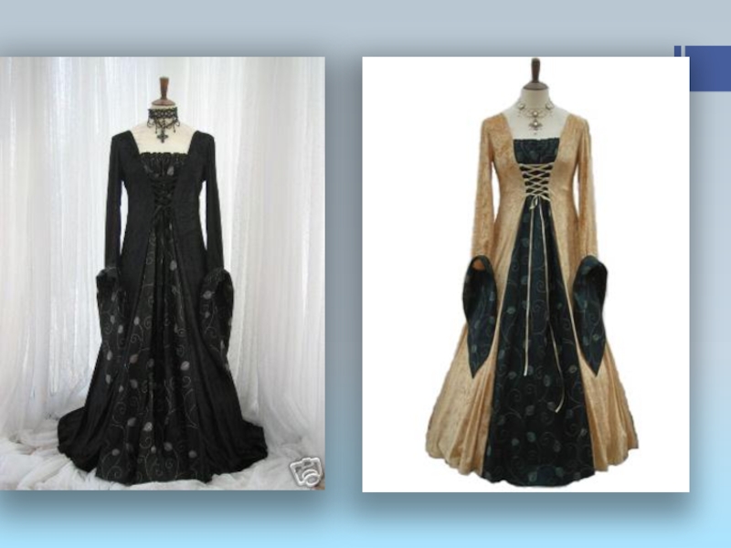 В прямом свободном силуэте решались верхние платья покроя упелянд, появившиеся в 15 в.