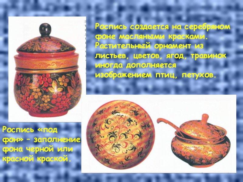 Роспись «под фон» – заполнение фона черной или красной краской.