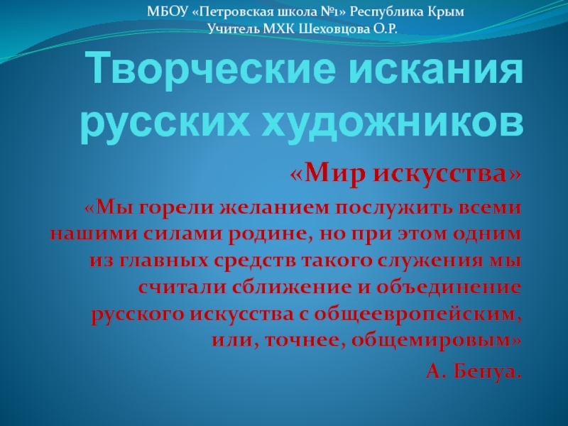 МИРОИСКУССНИКАМИ» ВЫПОЛНЕНА?