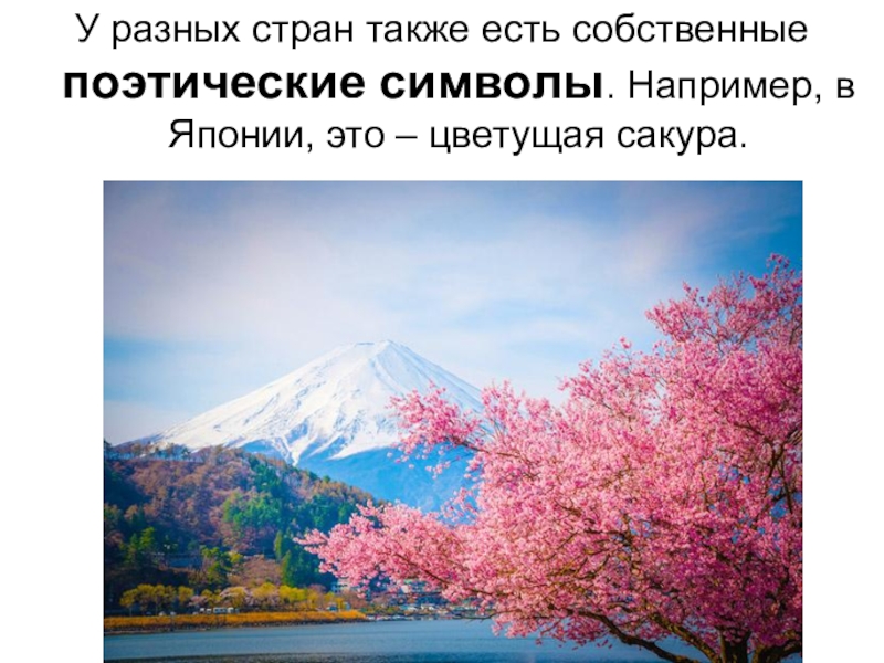 Слайд 47У разных стран также есть собственные поэтические символы. Например, в Японии,