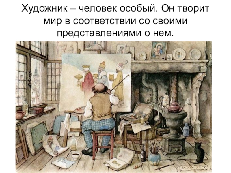 Слайд 4Художник – человек особый. Он творит мир в соответствии со своими