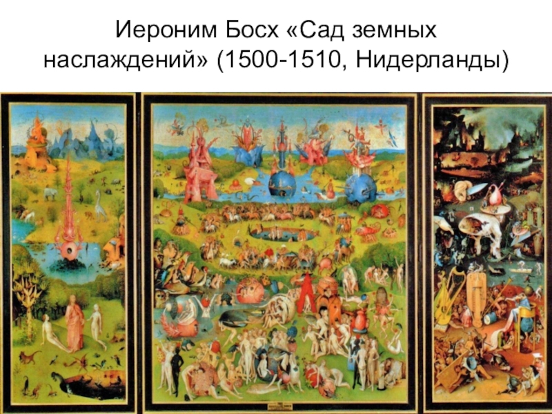 Слайд 12Иероним Босх «Сад земных наслаждений» (1500-1510, Нидерланды)