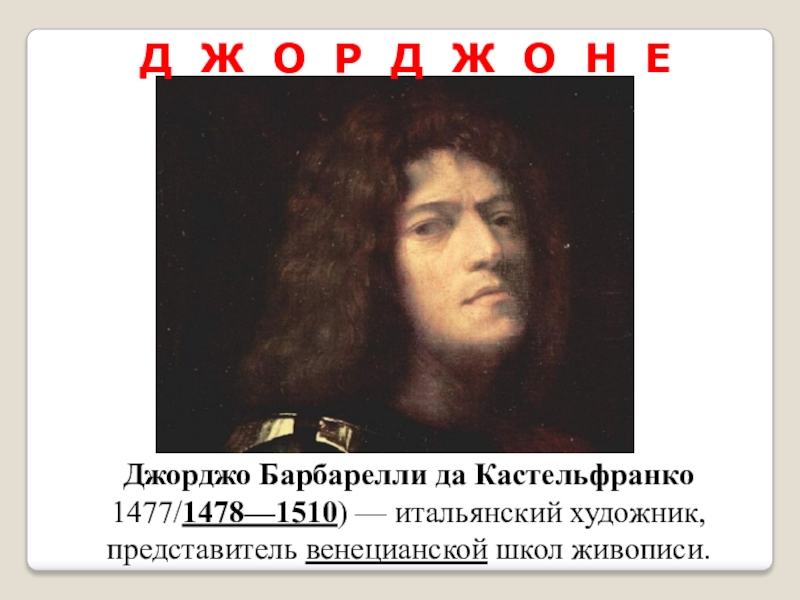 Слайд 17Джорджо Барбарелли да Кастельфранко 1477/1478—1510) — итальянский художник, представитель венецианской школ живописи.