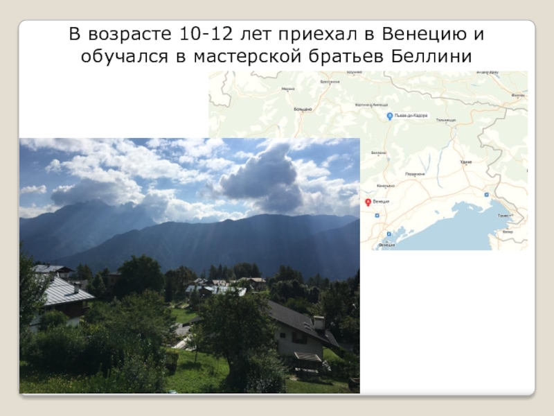 Слайд 32В возрасте 10-12 лет приехал в Венецию и обучался в мастерской
