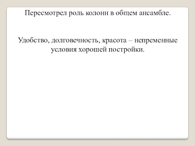 Слайд 7Пересмотрел роль колонн в общем ансамбле.