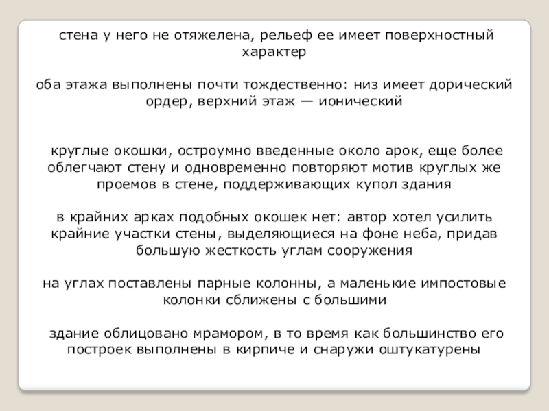 Слайд 14 стена у него не отяжелена, рельеф ее имеет поверхностный характер