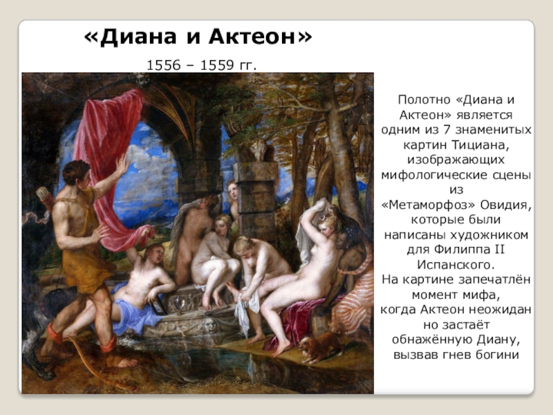 одним из 7 знаменитых картин Тициана, изображающих мифологические сцены из «Метаморфоз» Овидия, которые были написаны художником для Филиппа II Испанского.