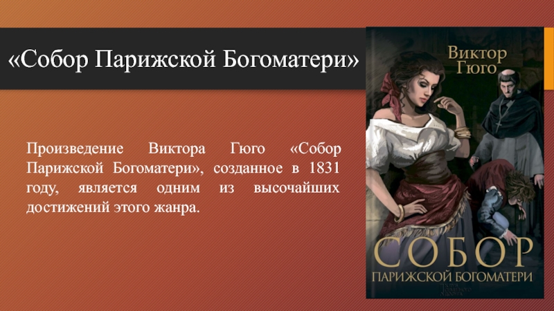 «Собор Парижской Богоматери»Произведение Виктора Гюго «Собор Парижской Богоматери», созданное в 1831 году, является одним из высочайших достижений