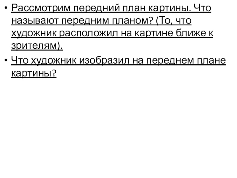 Слайд 21Рассмотрим передний план картины. Что называют передним планом? (То, что художник