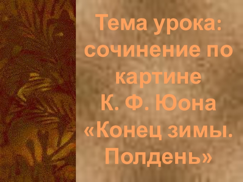 Тема урока:сочинение по картине К. Ф. Юона«Конец зимы. Полдень»