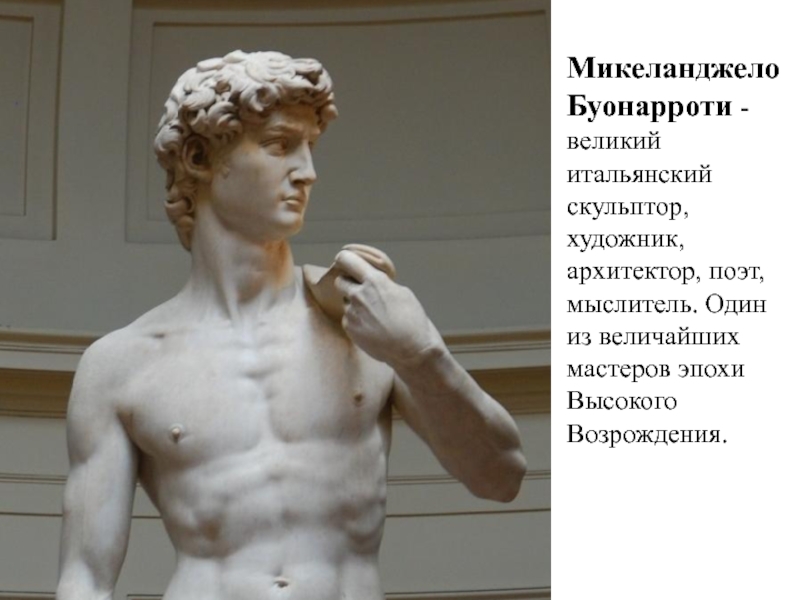 Слайд 49Микеланджело Буонарроти -великий итальянский скульптор, художник, архитектор, поэт, мыслитель. Один из