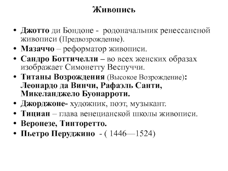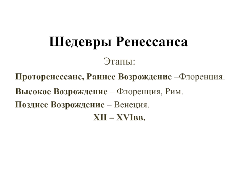 Проторенессанс, Раннее Возрождение –Флоренция.