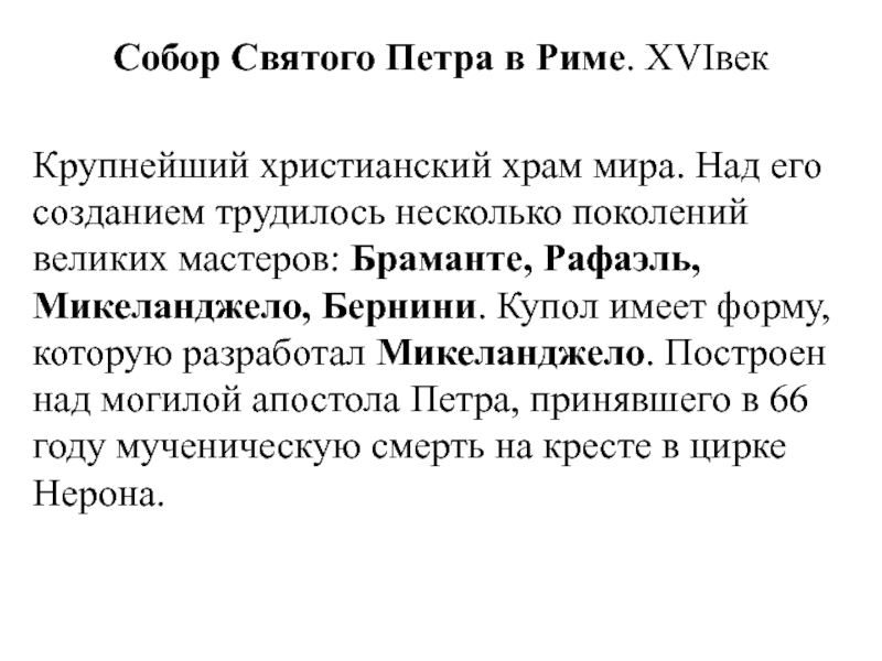 Слайд 39Собор Святого Петра в Риме. XVIвек