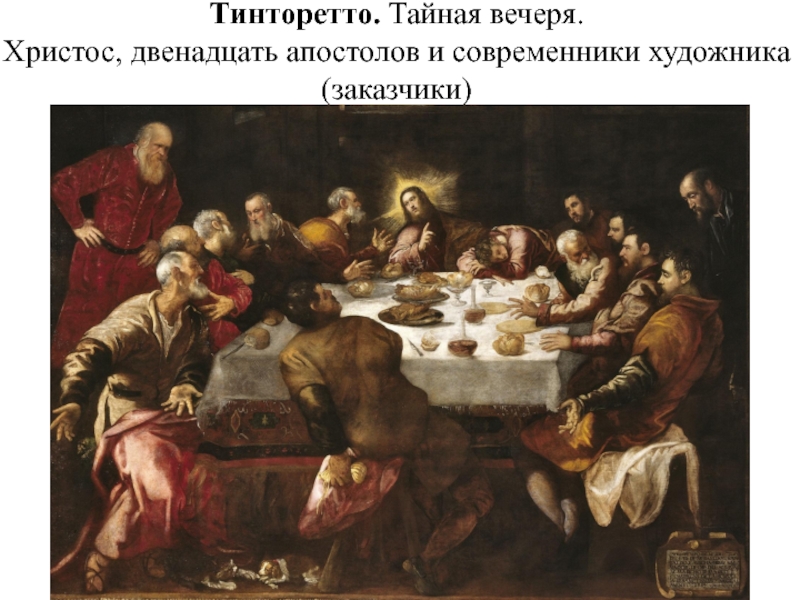 Христос, двенадцать апостолов и современники художника(заказчики)