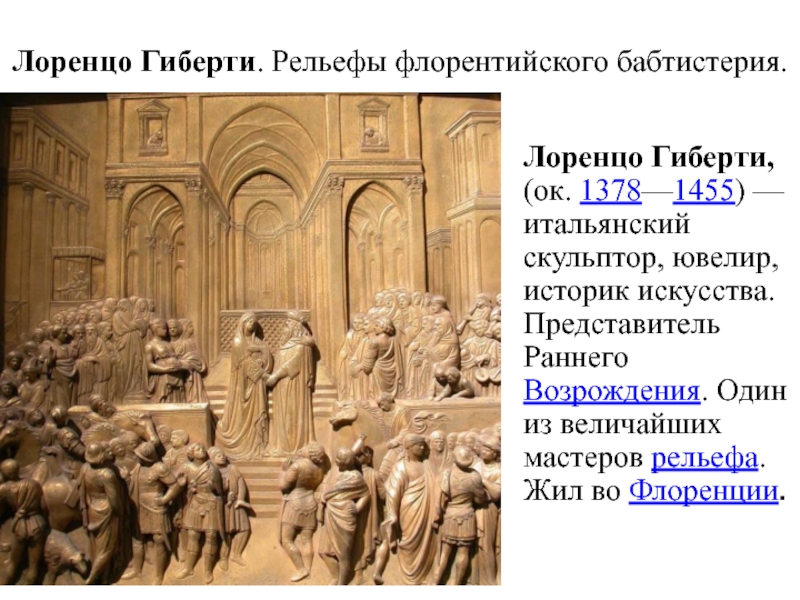 Слайд 44Лоренцо Гиберти. Рельефы флорентийского бабтистерия.