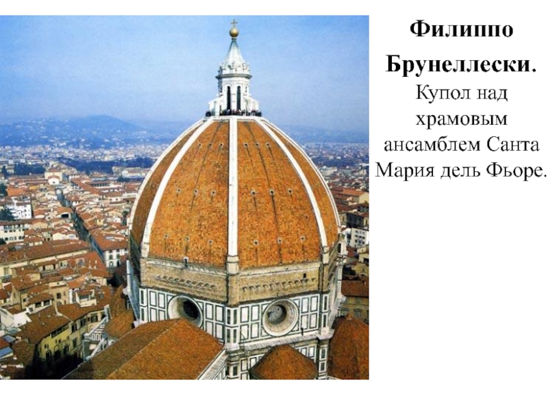 Слайд 33Филиппо Брунеллески. Купол над храмовым ансамблем Санта Мария дель Фьоре.