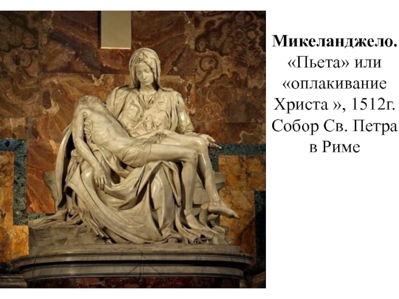 Слайд 51Микеланджело. «Пьета» или «оплакивание Христа », 1512г. Собор Св. Петра в