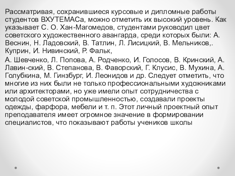 Слайд 9Рассматривая, сохранившиеся курсовые и дипломные работы студентов ВХУТЕМАСа, можно отметить их