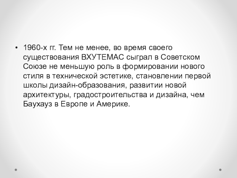 Слайд 81960-х гг. Тем не менее, во время своего существования ВХУТЕМАС сыграл