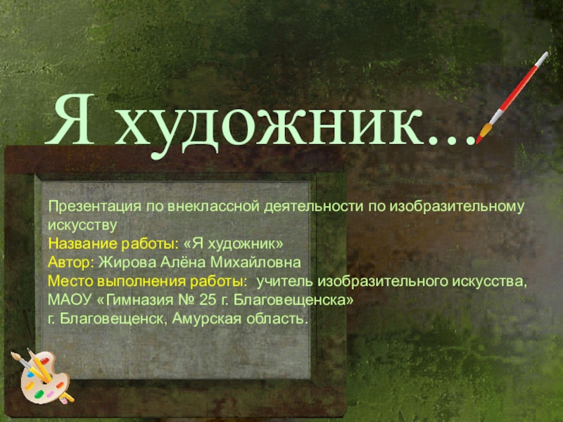 Место выполнения работы: учитель изобразительного искусства, МАОУ «Гимназия № 25 г. Благовещенска»