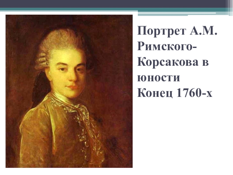 Слайд 10Портрет А.М.Римского-Корсакова в юности Конец 1760-х