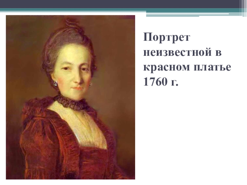 Слайд 8Портрет неизвестной в красном платье 1760 г.