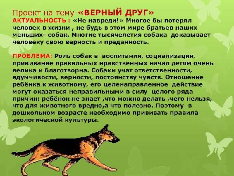 Слайд 2Проект на тему «ВЕРНЫЙ ДРУГ»