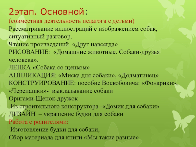 ПРОБЛЕМА: Роль собак в воспитании, социализации. прививание правильных нравственных начал детям очень велика и благотворна. Собаки учат ответственности, вдумчивости, верности, постоянству чувств. Отношение ребёнка к животному, его целенаправленное действие могут оказаться неправильными в силу целого ряда причин: ребёнок не знает ,что можно делать ,чего нельзя, что для животного вредно,а что полезно. Поэтому в дошкольном возрасте необходимо прививать правила экологической культуры.