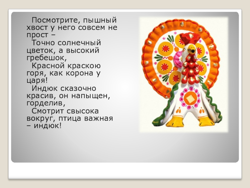 Слайд 20 Вот индюк нарядный, весь такой он ладный,