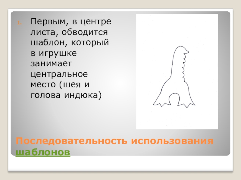 Последовательность использования шаблоновПервым, в центре листа, обводится шаблон, который в игрушке занимает центральное место (шея и голова