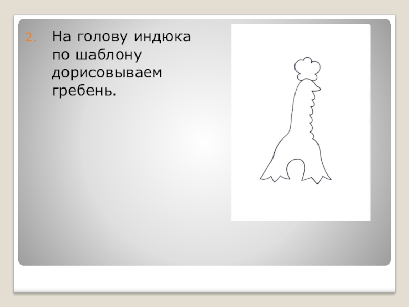 Слайд 23На голову индюка по шаблону дорисовываем гребень.
