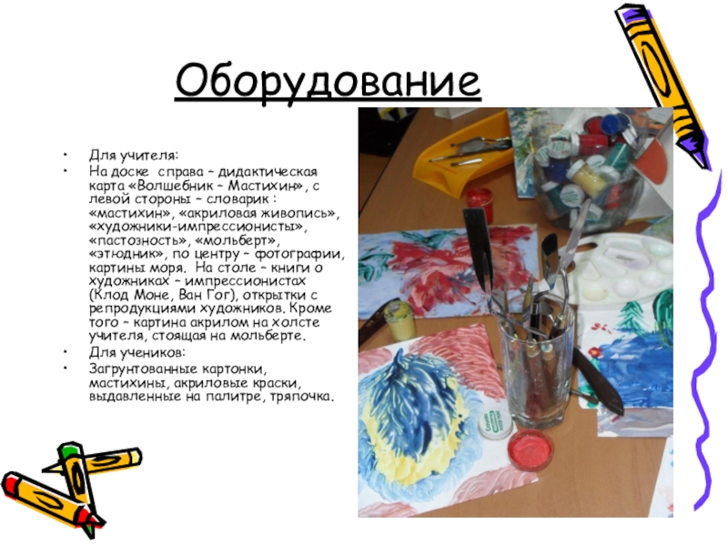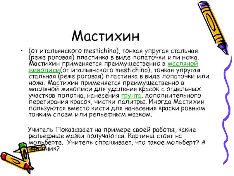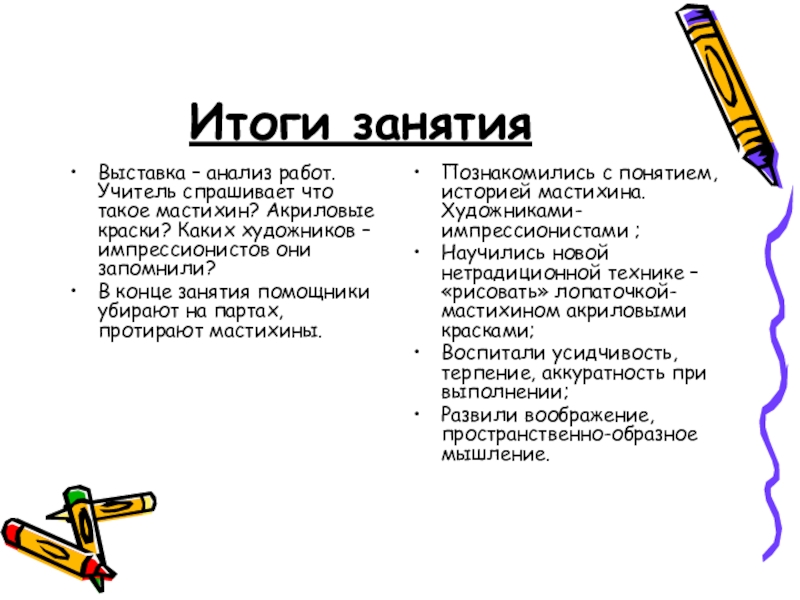 Познакомились с понятием, историей мастихина. Художниками-импрессионистами ;