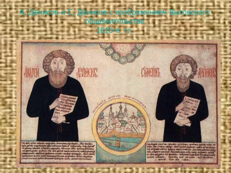 Слайд 12А. Денисов и С. Денисов с изображением Выговского общежительства 1810-е  гг.