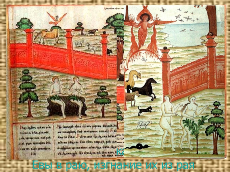 Слайд 16Сотворение человека, жизнь Адама и Евы в раю, изгнание их из