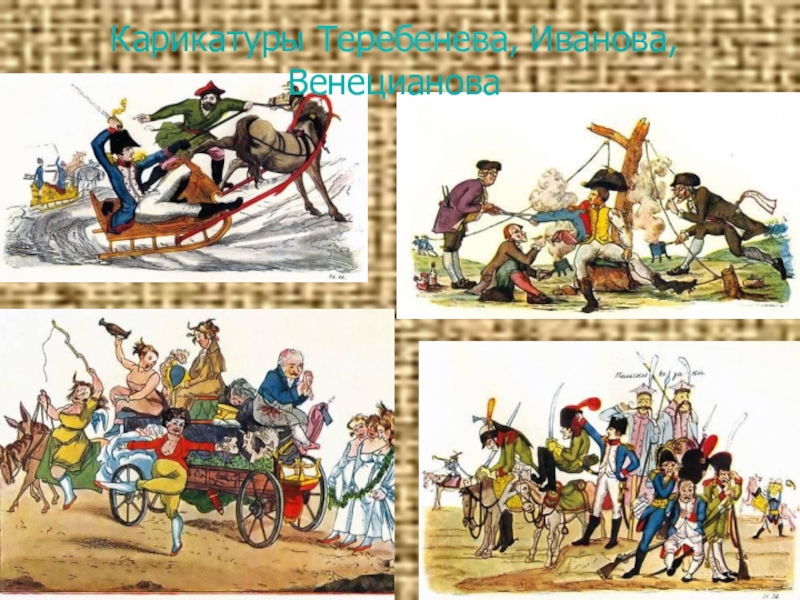 Слайд 30Карикатуры Теребенева, Иванова, Венецианова