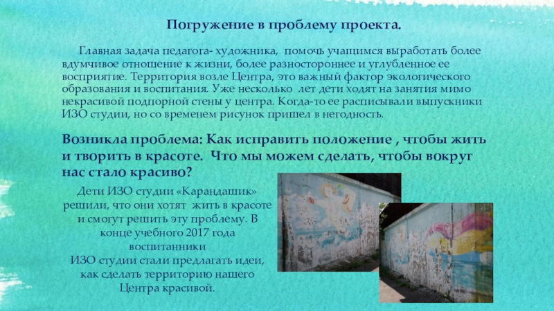 Дети ИЗО студии «Карандашик» решили, что они хотят жить в красоте и смогут решить эту проблему. В конце учебного 2017 года воспитанники