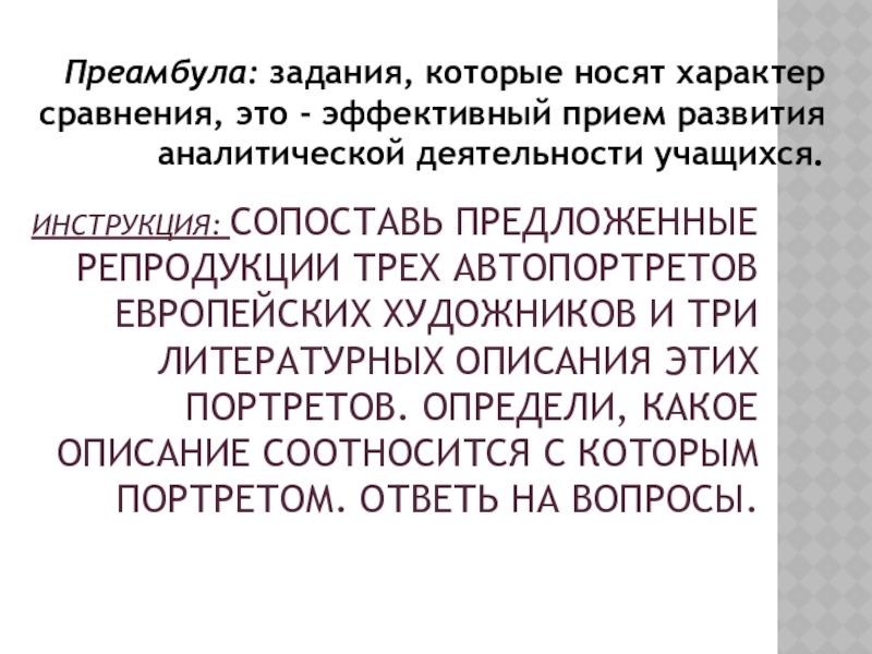 Преамбула: задания, которые носят характер сравнения, это - эффективный прием развития аналитической деятельности учащихся.