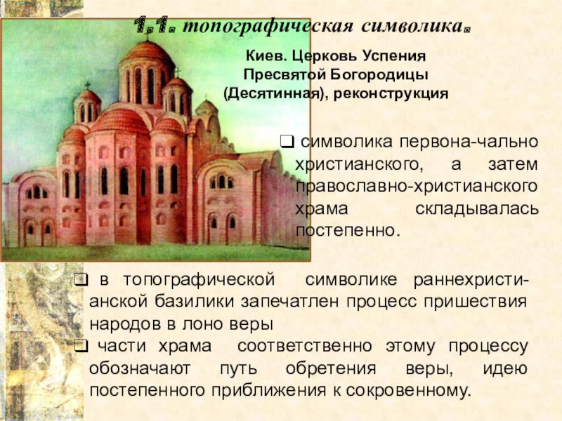 символика первона-чально христианского, а затем православно-христианского храма складывалась постепенно.