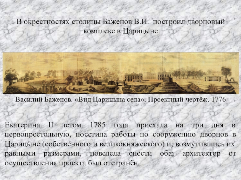 Василий Баженов. «Вид Царицына села». Проектный чертёж. 1776
