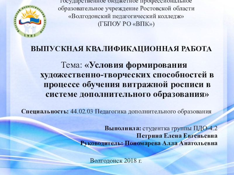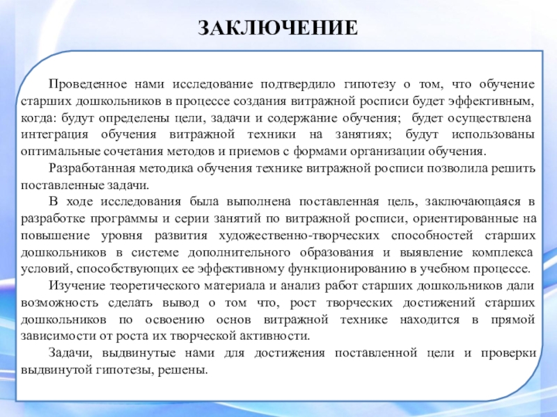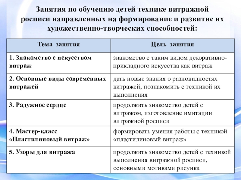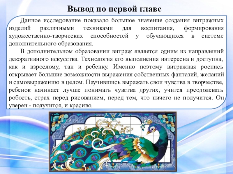 Тема: «Условия формирования художественно-творческих способностей в процессе обучения витражной росписи в системе дополнительного образования»