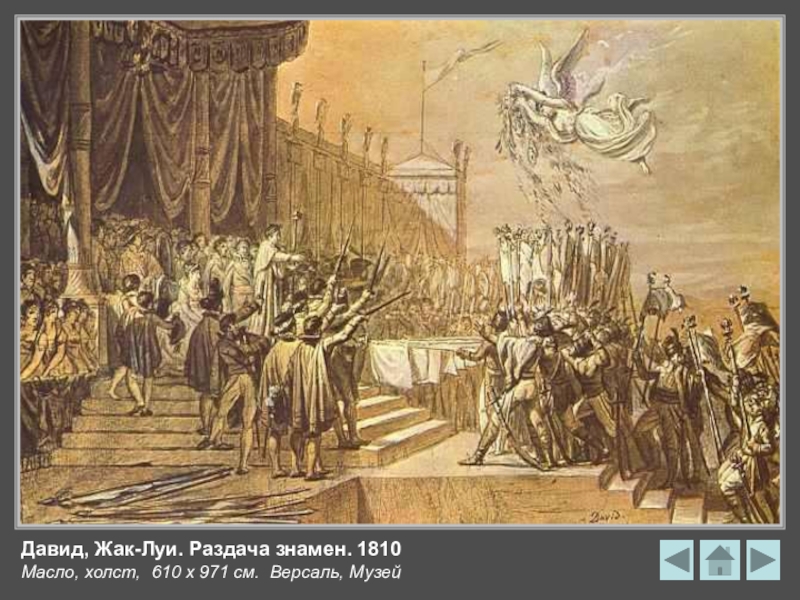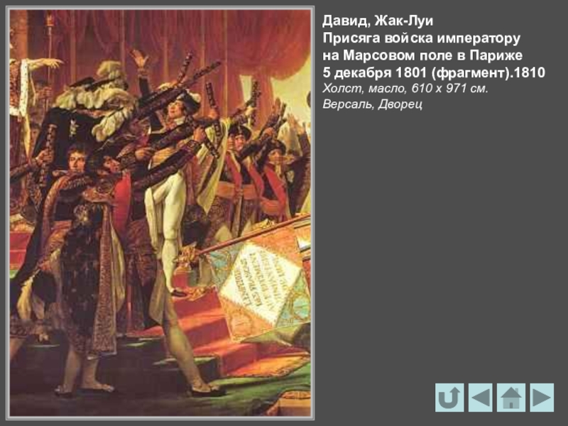 Большой общественный резонанс вызвало его полотно «Клятва в зале для игры в мяч» (Национальный музей, Версаль).