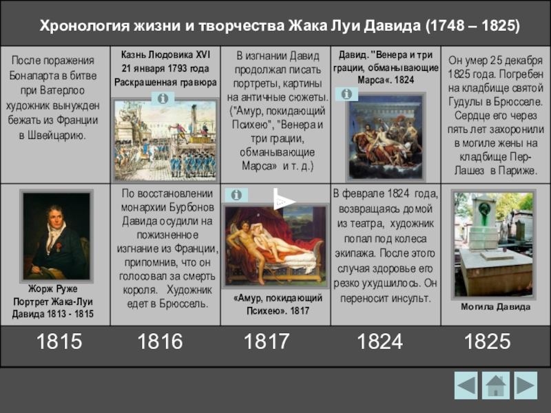 По восстановлении монархии Бурбонов Давида осудили на пожизненное изгнание из Франции, припомнив, что он голосовал за смерть короля. Художник едет в Брюссель.