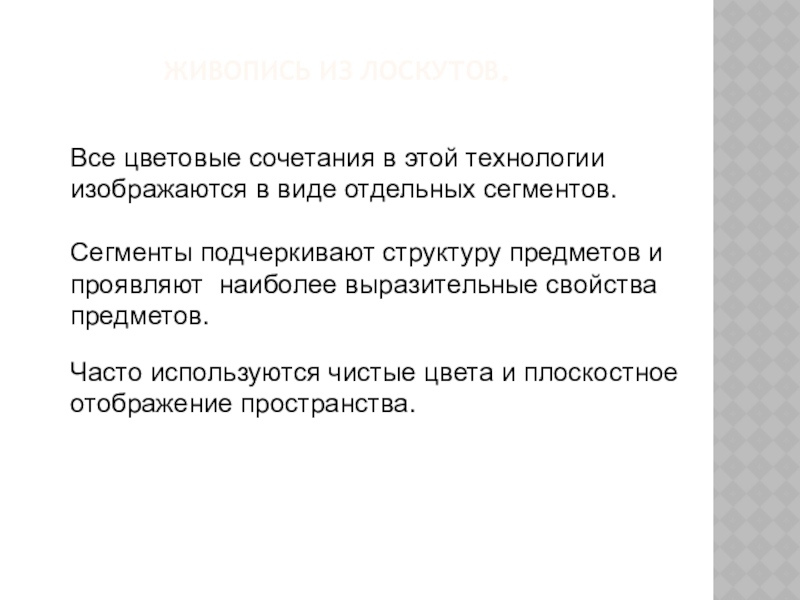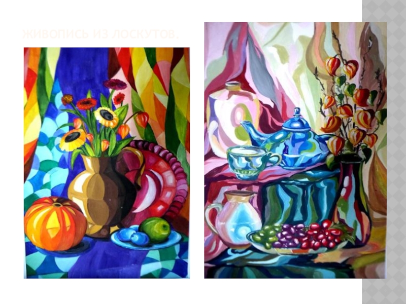 Слайд 8 ЖИВОПИСЬ ИЗ ЛОСКУТОВ.