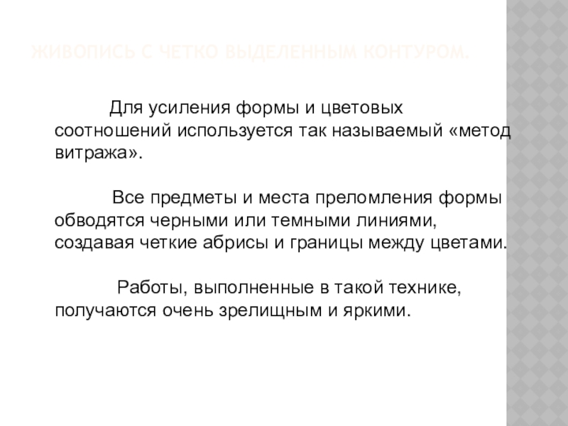 Слайд 11ЖИВОПИСЬ С ЧЕТКО ВЫДЕЛЕННЫМ КОНТУРОМ.