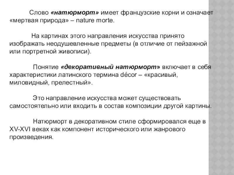 Слайд 3 Слово «натюрморт» имеет французские корни